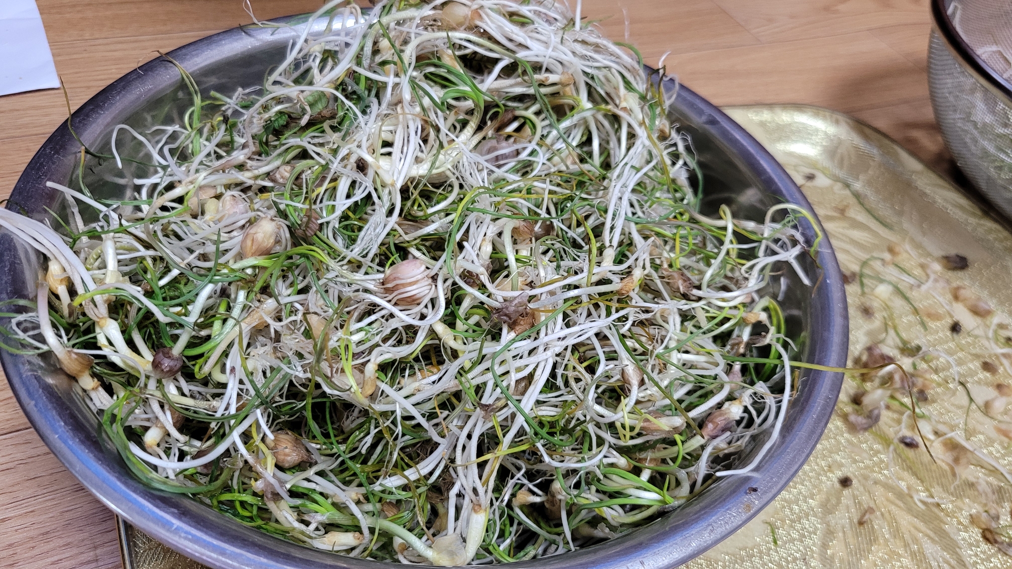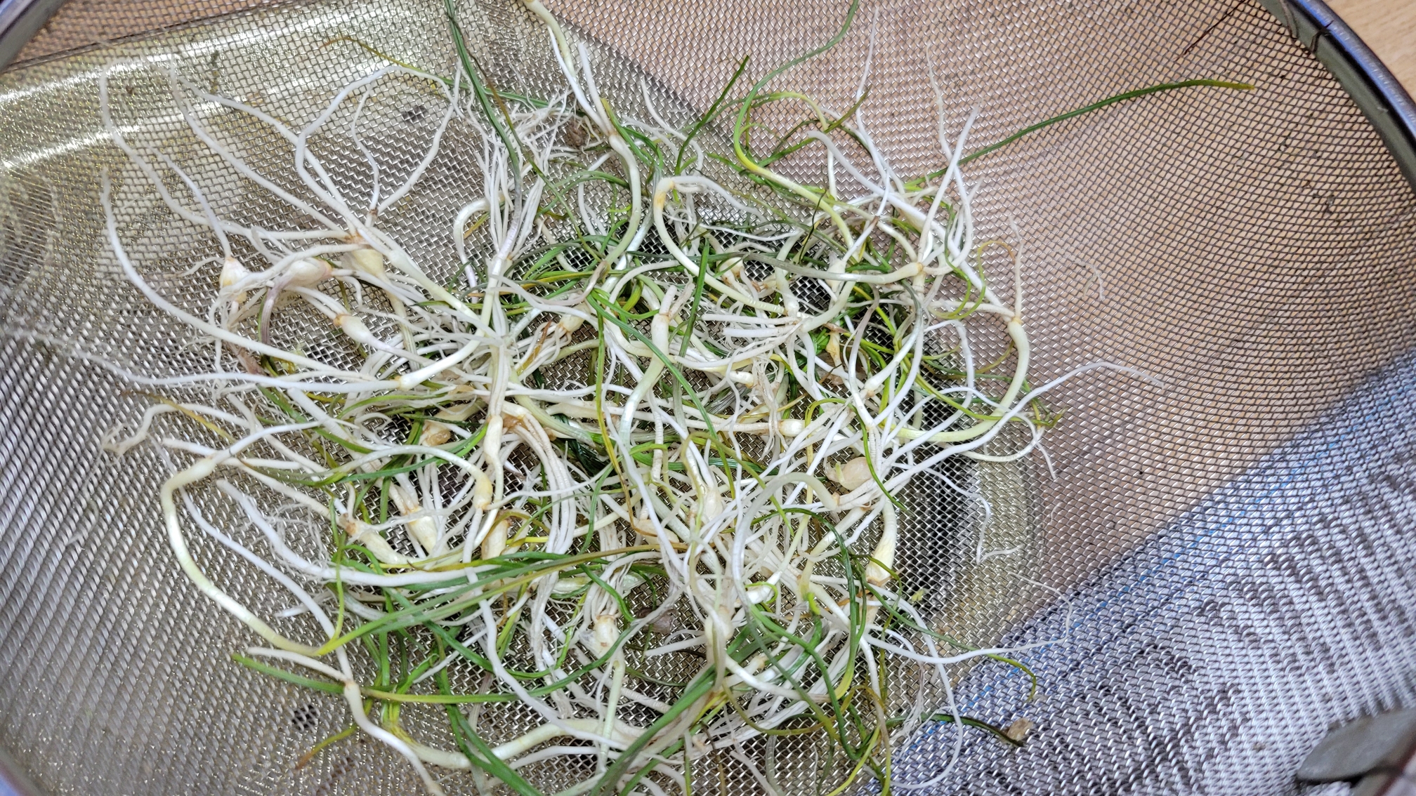 먼저 달래 뿌리를 살짝 다듬습니다.