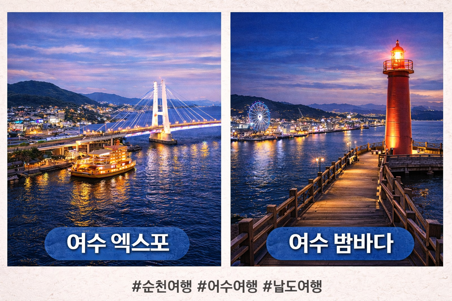 순천과 여수는 서로 가까운 거리에 있어 함께 여행하기 좋은 남도 여행 코스입니다.